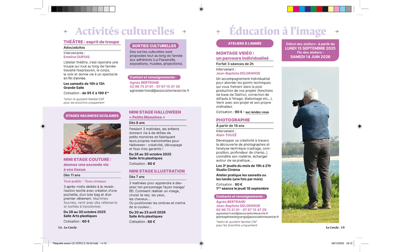 Nouvelle saison, nouveau visuel, toujours un montage photo, collage, pour faire suite au visuel de la saison 24-25. Venez découvrir la programmation de l’association Le Cercle : club sportif de football, secteur jeunesse, secteur culturel spécialisé dans l’éducation à l’image et le cinéma sur : www.associationlecercle.fr