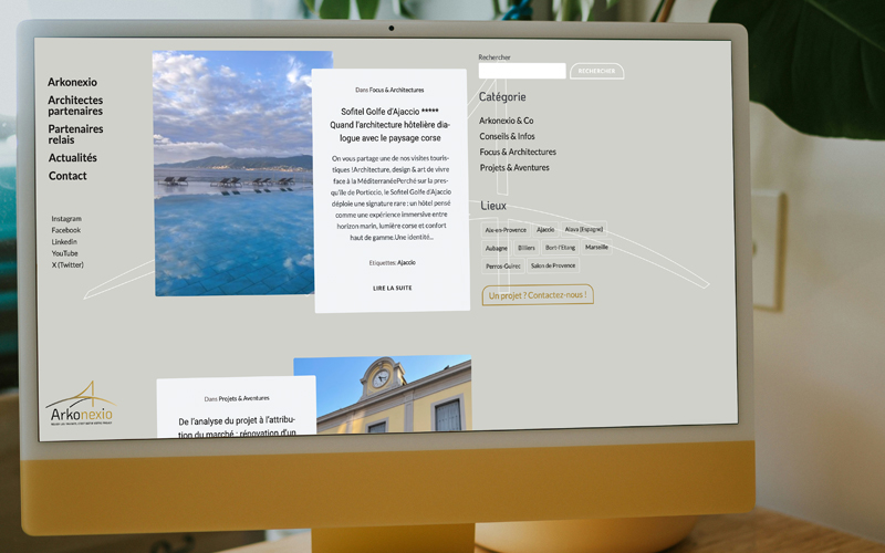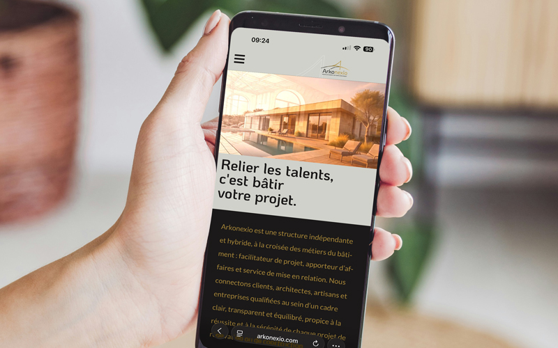 Création d’une identité visuelle print et web pour la structure indépendante Arkonexio. Ma mission était de créer un logo, un site internet, faisant le pont entre un facilitateur de projet, un apporteur d’affaires Guillaume Payen-Ascone et les architectes, les artisans et les entreprises de rénovation ou de construction. Avec comme développeur web Luc Gaillard de l’agence Toile bleue, nous avons réalisé un site où les talents sont réunis pour bâtir votre projet. Venez découvrir ce site sur : www.arkonexio.com